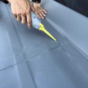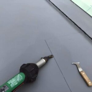 塩ビシート同士の重なりは熱を使って溶接するため、材料同士を溶かして一体化させることとなり、水の侵入する隙間を作らなくて済みます。