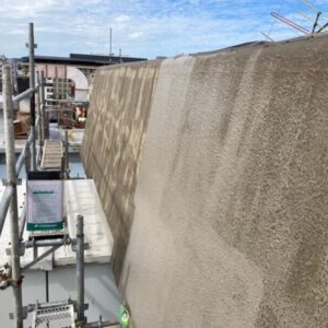 その後、外壁全体にポリマーセメント系塗膜防水を施工。